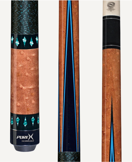 Pure X Birdseye Maple & Black/Turquoise Points Cue with Black Linen Wrap