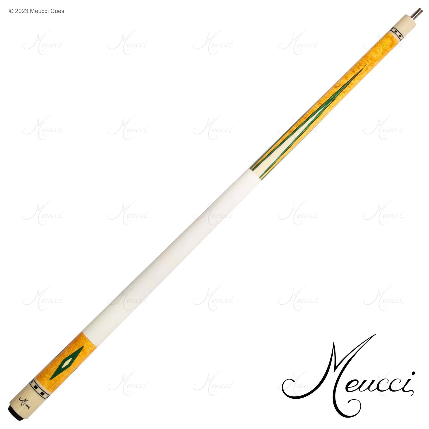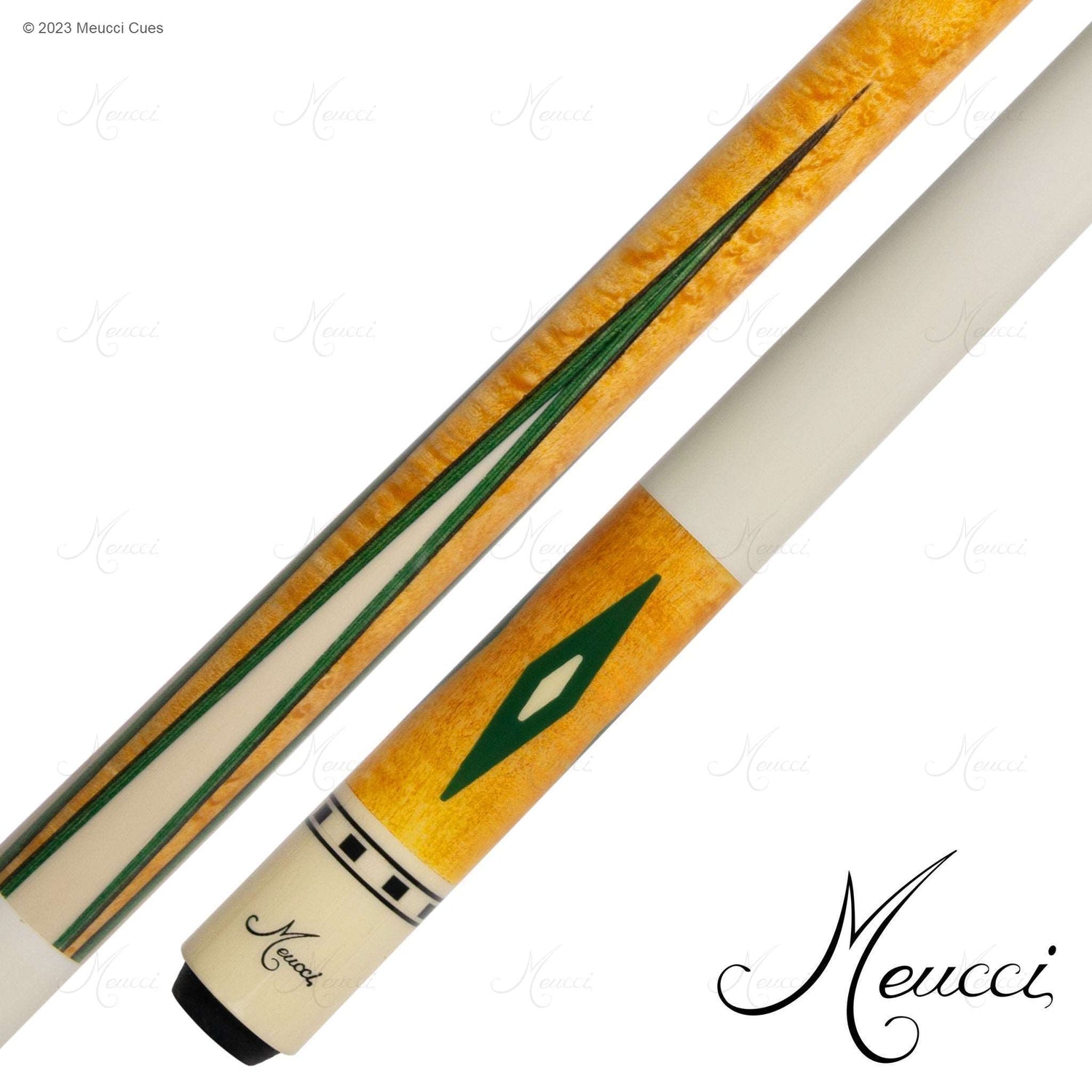 Butt Sleeve : Antique stained maple with green stained diamonds with small cream colored diamonds in the center