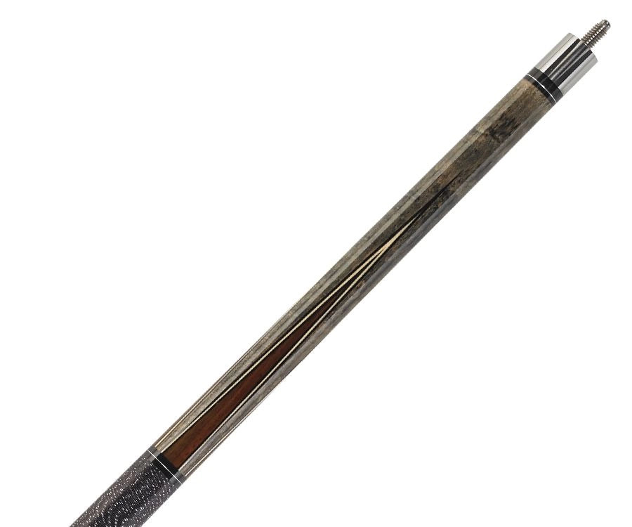 Incorporating grey stained maple on the sleeve, the deep color of this cue is enhanced further by the black Irish linen wrap with white specs. Beauty aside, this is a high performing, yet reasonably priced, cue with a 5/16x18 joint to provide a secure and durable connection.
