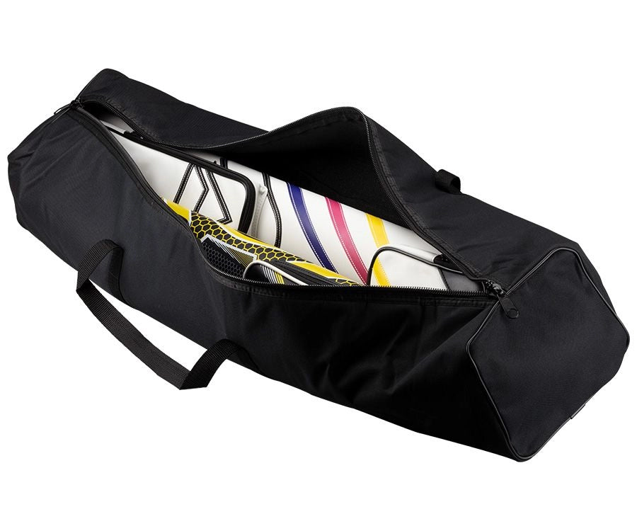 Traveling with pool cues can be difficult and cumbersome, and many airlines will not allow them to be carried onto a plane. This lightly padded travel case allows cue cases (up to two 4 x 8s) to be checked, and will protect your cases from snags, rips, and abrasions while traveling. Note: Not compatible with all traditional-style cases with a top handle