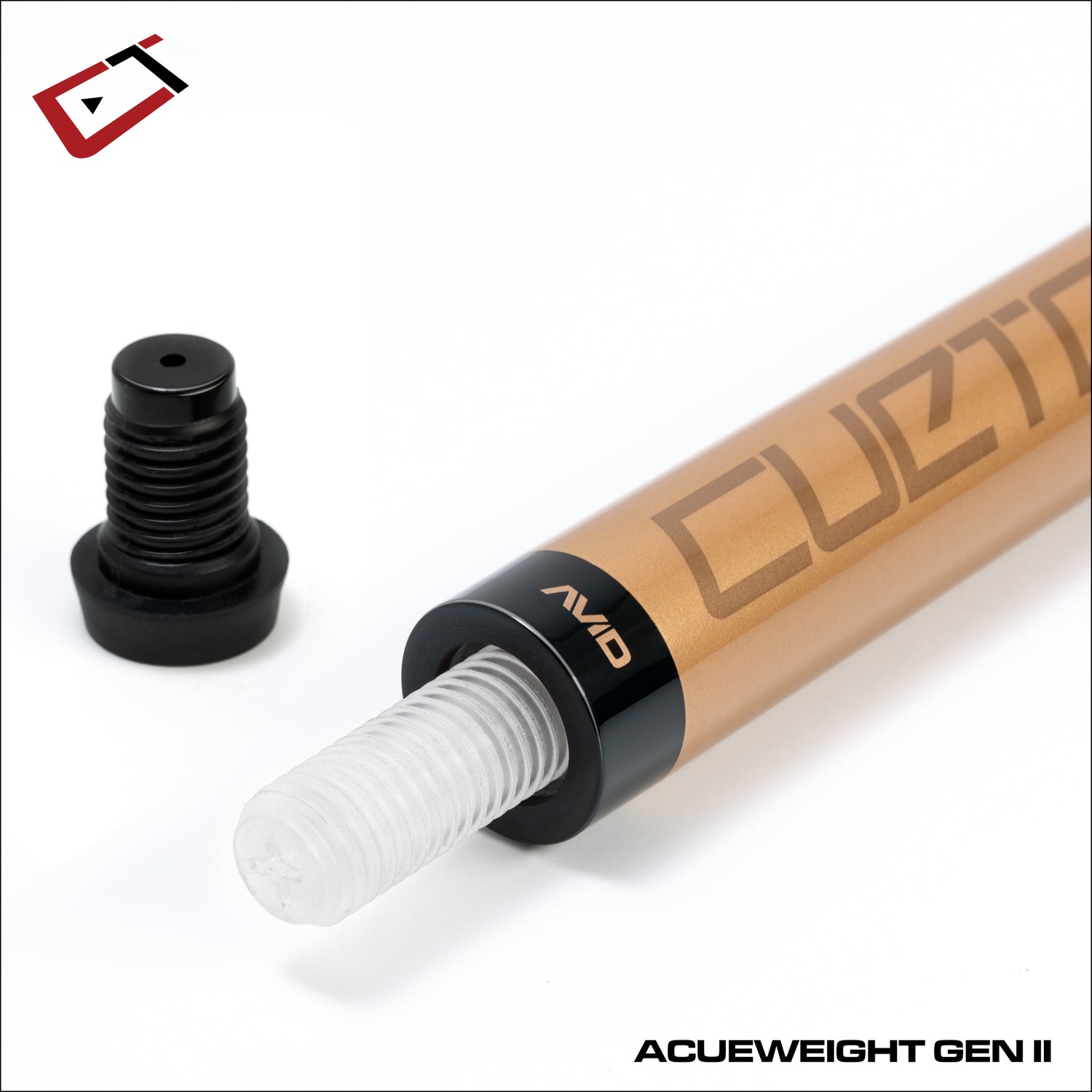 | CUE & SHAFT SPECS | Standard Butt Length 29" Standard Shaft Length: 29” Standard Tip: Tiger® Everest Laminated (medium) Joint: 3/8×14 Cuetec Joint (21.30mm) Shaft Collar: 1.5mm Black Standard Cue & Shaft Weight: 19oz (Acueweight adjustable in 0.25 oz. increments) Standard Shaft Weight: 3.8oz Wrap: None |